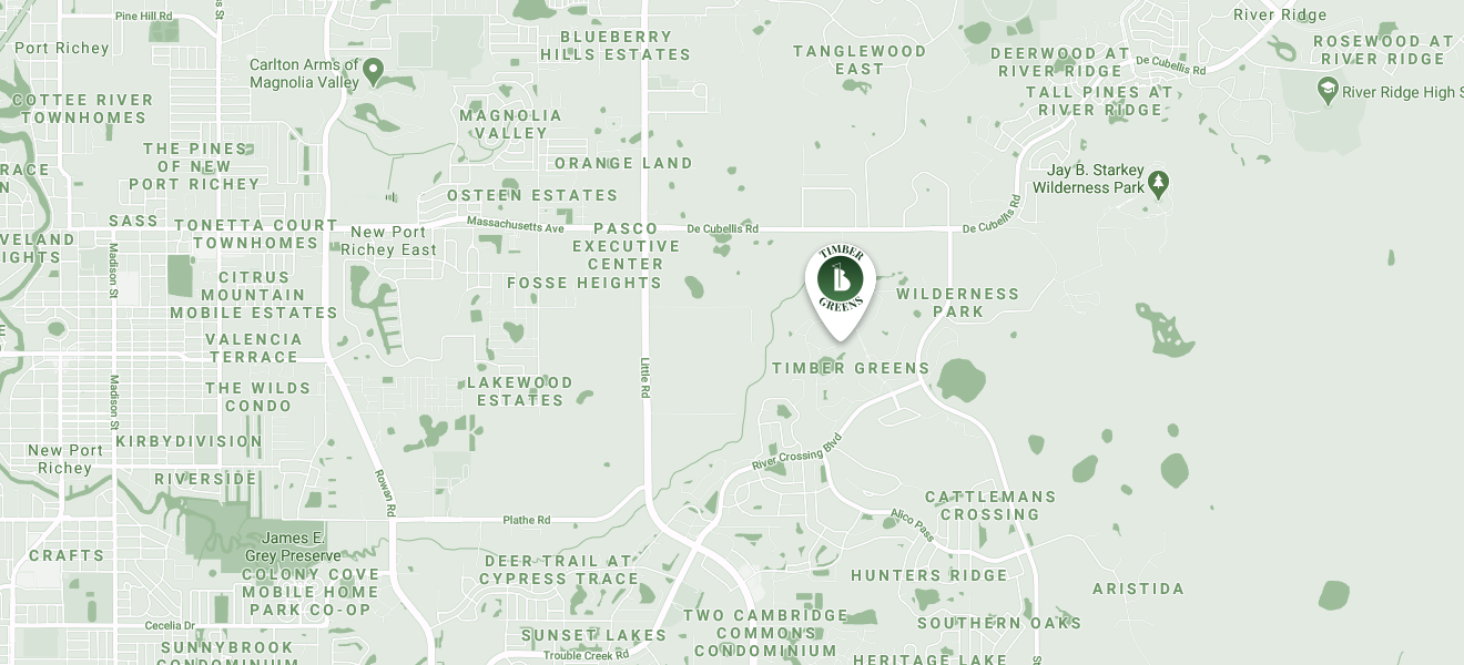 We offer outstanding amenities including a semi-private, and pristine 18-hole golf course, expansive clubhouse, swimming pool, hot tub, tennis, pickleball and bocce courts, fitness center, full dining and bar service, along with an abundance of activities and social events for residents and guests. Timber Greens also features seven miles of beautifully landscaped neighborhood roads and sidewalks for walking, running and / or biking with the bonus of close proximity to Jay B. Starkey Wilderness Park for additional outdoor recreational activities.